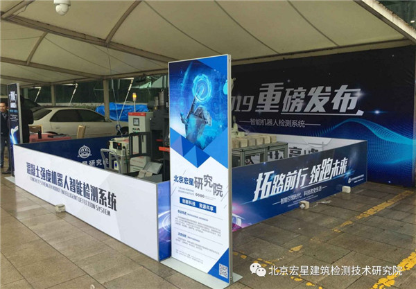 本次会议还设立智能检测机器人展示区,展会上我公司展示了自主研发的混凝土强度检测智能机器人,吸引了同行业专业人士的高度关注。此次展示的混凝土强度检测智能机器人,其主要特点是:1、检测机器人通过扫描二维码识别混凝土强度样品,做到样品与样品编号相对应,实现混凝土强度样品的正确识别、运输及摆放的功能;2、检测机器人操作压力试验机,及时调整混凝土样品的放置位置、控制加荷速率,完成混凝土强度试验过程,然后将检测厚的混凝土强度样品放到指定位置;3、检测采集的数据传输到信息管理系统后生成检测记录和报告。